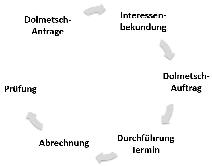 Von der Anbahnung bis zur Abrechnung ist die Vergabe von Dolmetsch-Aufträgen vollständig digitalisiert.