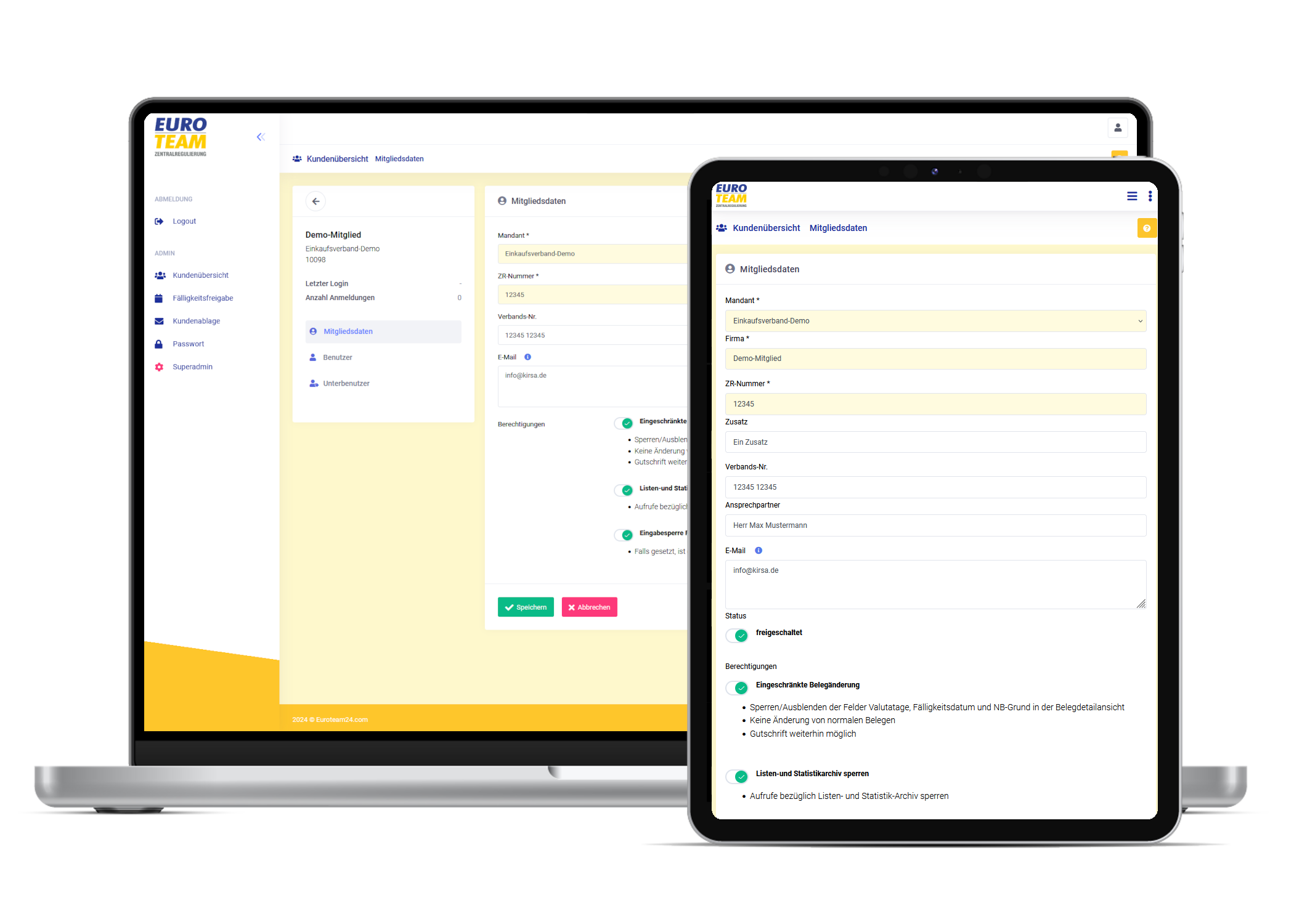 Für die Stammdaten-Verwaltung haben wir eine besondere Detailansicht integriert, die die komplexe Datenstruktur gut visualisiert.